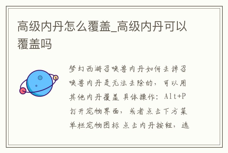 高級內丹怎么覆蓋_高級內丹可以覆蓋嗎