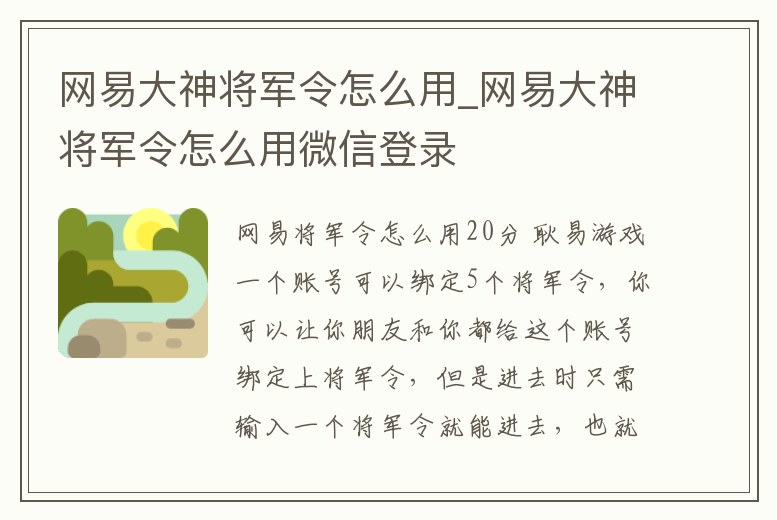 網易大神將軍令怎么用_網易大神將軍令怎么用微信登錄