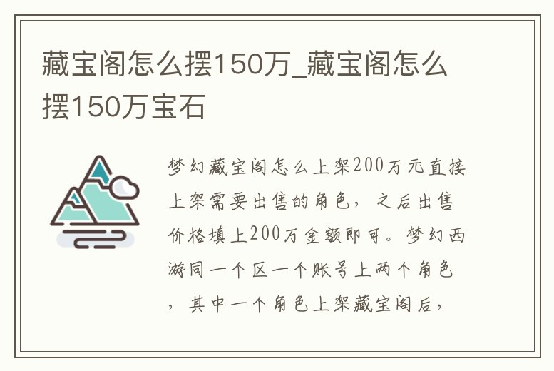 藏寶閣怎么擺150萬_藏寶閣怎么擺150萬寶石