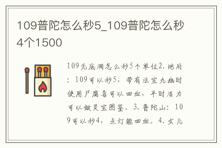 109普陀怎么秒5_109普陀怎么秒4個1500