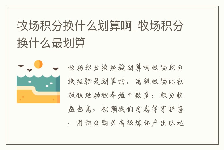 牧場積分換什么劃算啊_牧場積分換什么最劃算