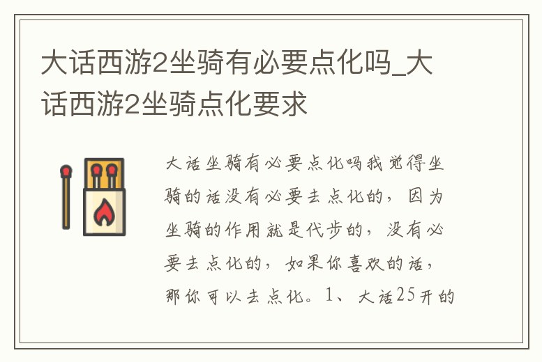 大話西游2坐騎有必要點化嗎_大話西游2坐騎點化要求