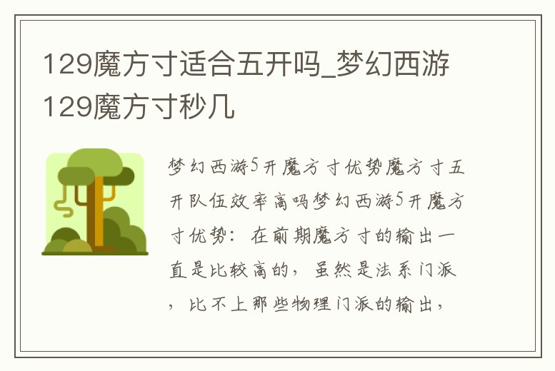 129魔方寸適合五開嗎_夢幻西游129魔方寸秒幾