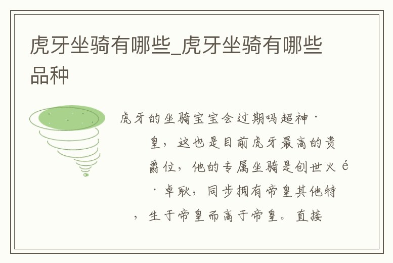 虎牙坐騎有哪些_虎牙坐騎有哪些品種