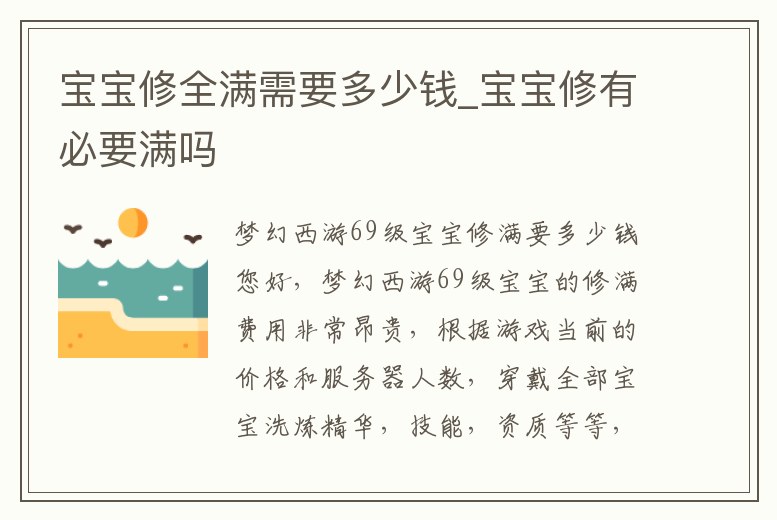 寶寶修全滿需要多少錢_寶寶修有必要滿嗎