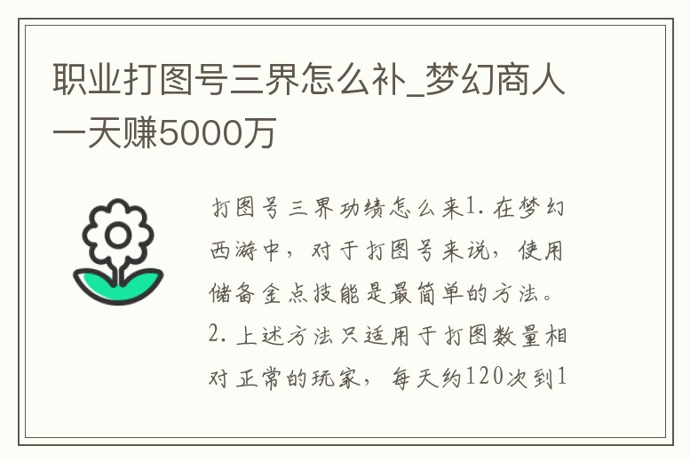 - 職業(yè)打圖號(hào)三界怎么補(bǔ)_夢(mèng)幻商人一天賺5000萬(wàn)