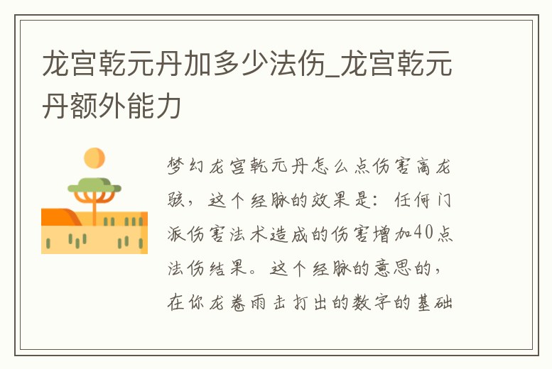 龍宮乾元丹加多少法傷_龍宮乾元丹額外能力