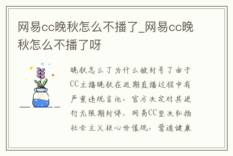 網易cc晚秋怎么不播了_網易cc晚秋怎么不播了呀