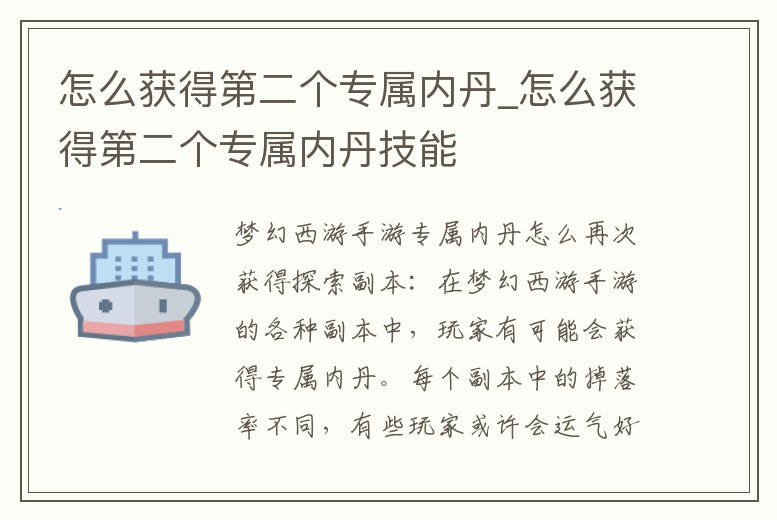 - 怎么獲得第二個(gè)專屬內(nèi)丹_怎么獲得第二個(gè)專屬內(nèi)丹技能