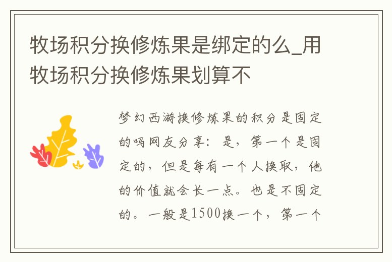 - 牧場(chǎng)積分換修煉果是綁定的么_用牧場(chǎng)積分換修煉果劃算不