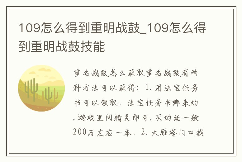 109怎么得到重明戰鼓_109怎么得到重明戰鼓技能