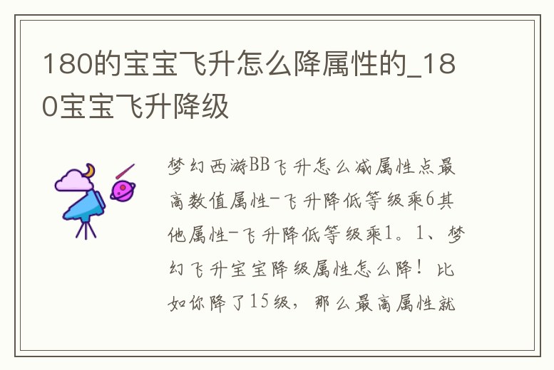 180的寶寶飛升怎么降屬性的_180寶寶飛升降級