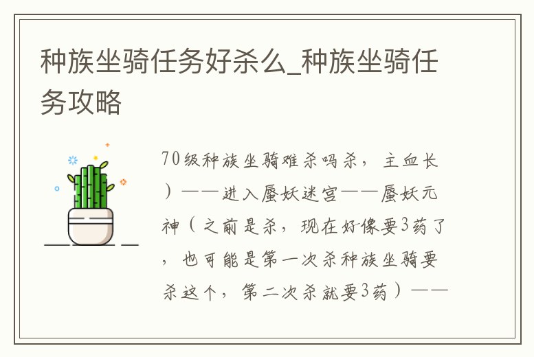 種族坐騎任務好殺么_種族坐騎任務攻略