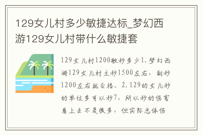129女兒村多少敏捷達標_夢幻西游129女兒村帶什么敏捷套
