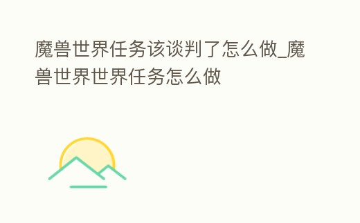 魔獸世界任務該談判了怎么做_魔獸世界世界任務怎么做