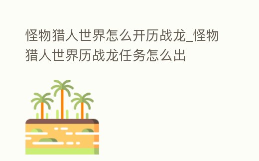 怪物獵人世界怎么開歷戰龍_怪物獵人世界歷戰龍任務怎么出