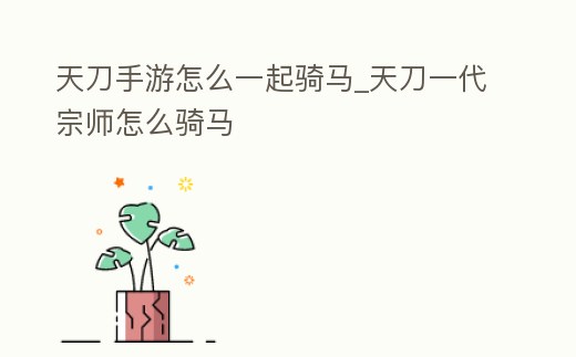 天刀手游怎么一起騎馬_天刀一代宗師怎么騎馬
