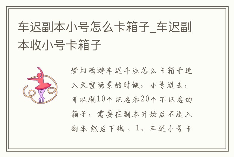車遲副本小號怎么卡箱子_車遲副本收小號卡箱子
