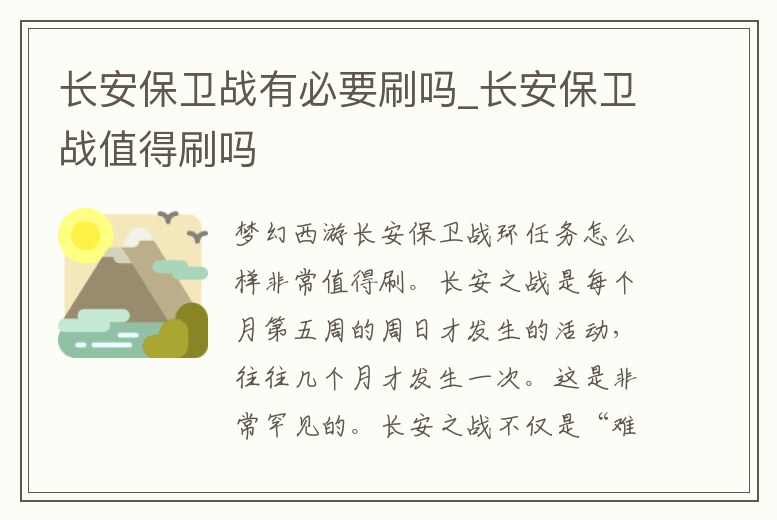 長安保衛戰有必要刷嗎_長安保衛戰值得刷嗎