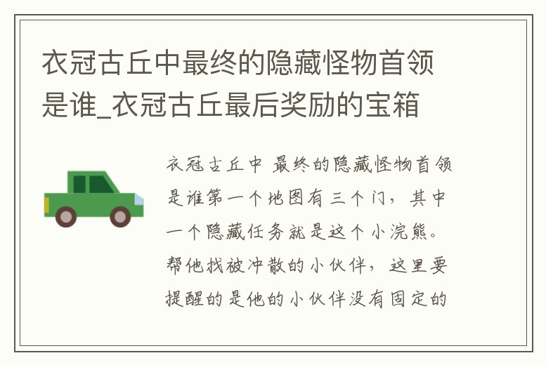 衣冠古丘中最終的隱藏怪物首領是誰_衣冠古丘最后獎勵的寶箱