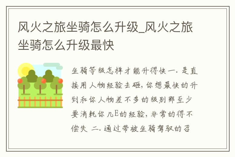 風(fēng)火之旅坐騎怎么升級(jí)_風(fēng)火之旅坐騎怎么升級(jí)最快