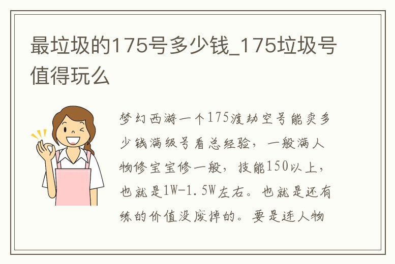 - 最垃圾的175號(hào)多少錢(qián)_175垃圾號(hào)值得玩么