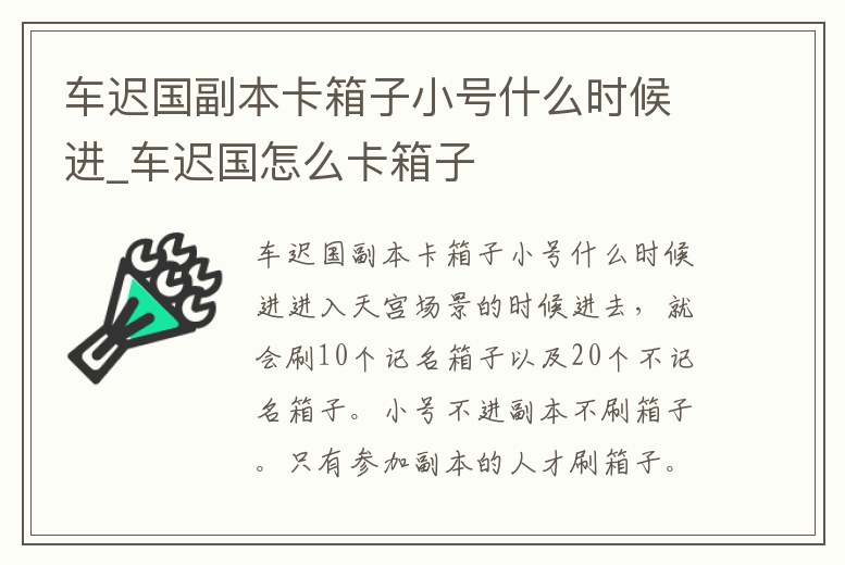 車遲國副本卡箱子小號什么時候進_車遲國怎么卡箱子