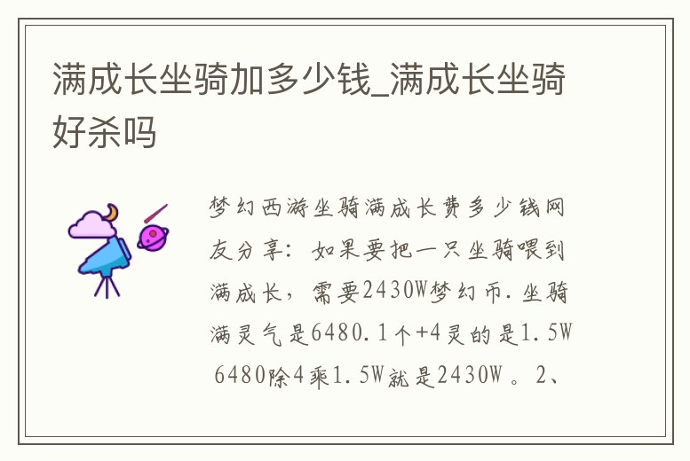 滿成長(zhǎng)坐騎加多少錢(qián)_滿成長(zhǎng)坐騎好殺嗎