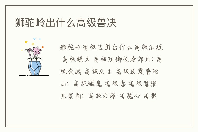 7、夢(mèng)幻西游高級(jí)獸決出處