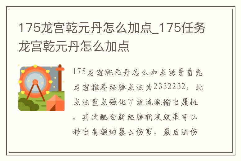 175龍宮乾元丹怎么加點_175任務龍宮乾元丹怎么加點