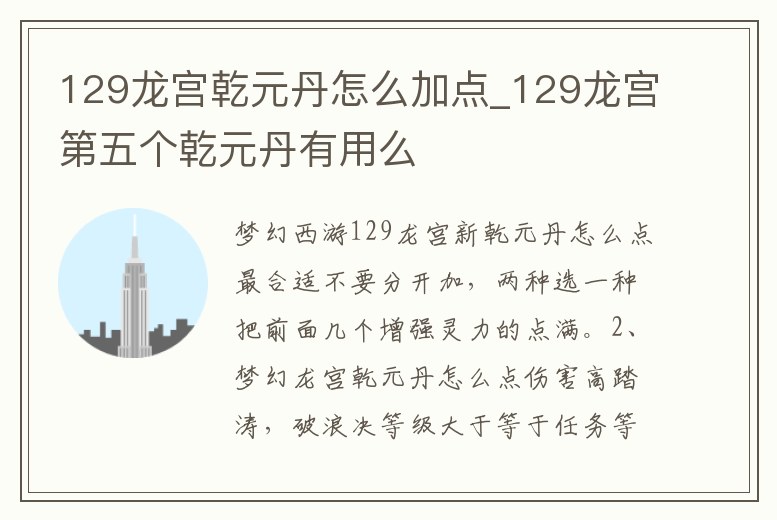 - 129龍宮乾元丹怎么加點(diǎn)_129龍宮第五個(gè)乾元丹有用么
