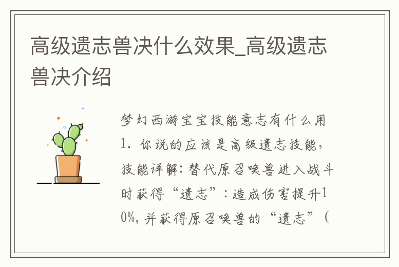 - 高級(jí)遺志獸決什么效果_高級(jí)遺志獸決介紹