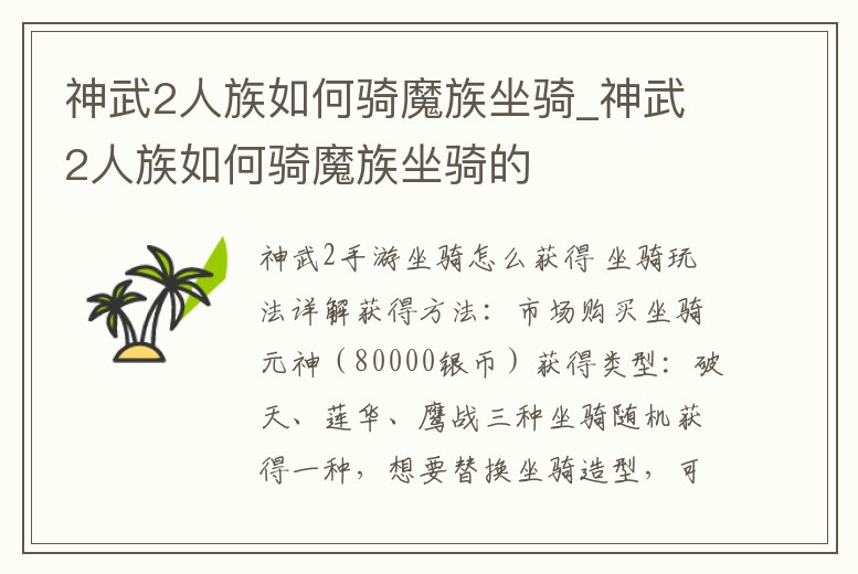 神武2人族如何騎魔族坐騎_神武2人族如何騎魔族坐騎的