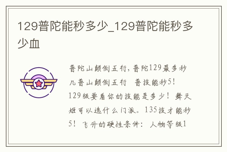 飛升129普陀能秒6,但需要注意手法。飛升129普陀是夢幻西游中的游戲道具。游戲背景:話說數千年前,蚩尤復活動亂,挑撥仙魔大戰,人類為求自保,或投身于兩方之一,或自成一伍,一場人、仙、魔三界混戰就此拉開帷幕,三界。