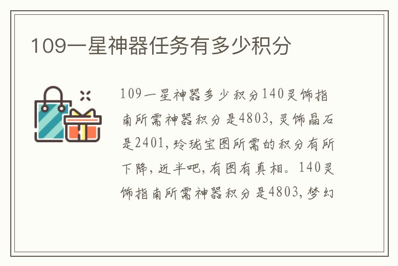 140靈飾指南所需神器積分是4803,靈飾晶石是2401,玲瓏寶圖所需的積分有所下降,近半吧,有圖有真相。140靈飾指南所需神器積分是4803,夢幻西游神器任務(wù)需要多少抗 回答:看你殺多少星的,1星的不難。現(xiàn)在一般都是殺3星,