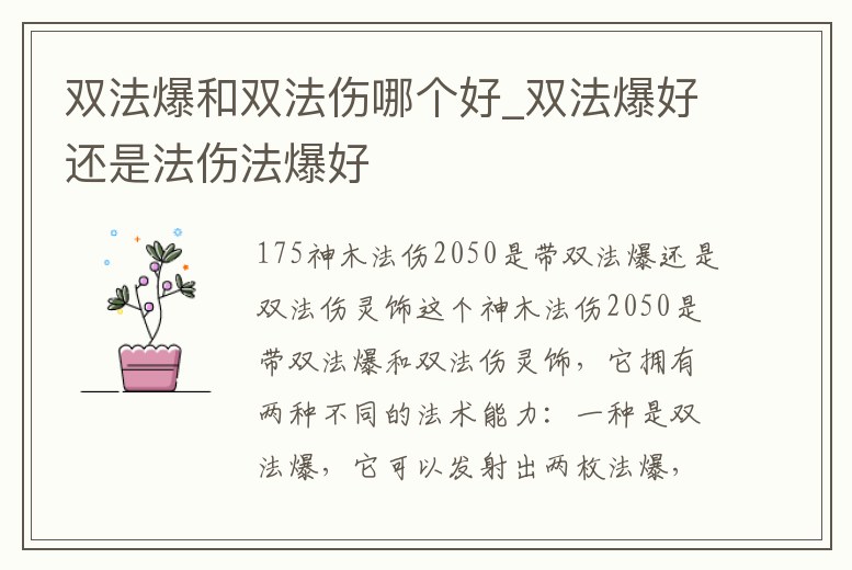 雙法爆和雙法傷哪個好_雙法爆好還是法傷法爆好