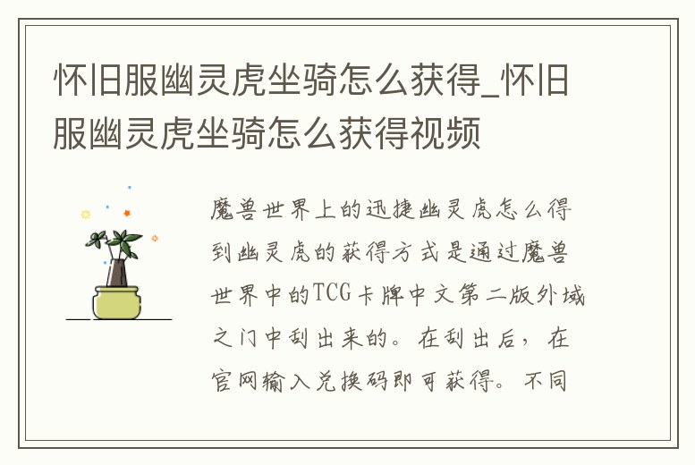 懷舊服幽靈虎坐騎怎么獲得_懷舊服幽靈虎坐騎怎么獲得視頻