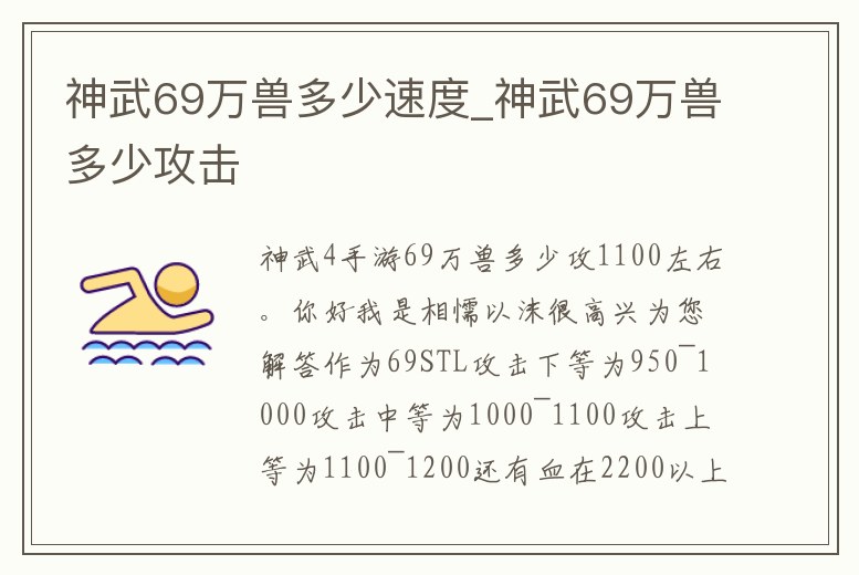 神武69萬獸多少速度_神武69萬獸多少攻擊