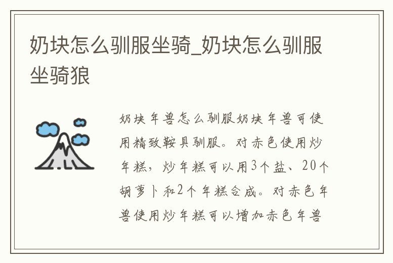 奶塊怎么馴服坐騎_奶塊怎么馴服坐騎狼