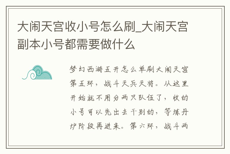 大鬧天宮收小號怎么刷_大鬧天宮副本小號都需要做什么