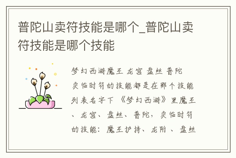 普陀山賣符技能是哪個_普陀山賣符技能是哪個技能