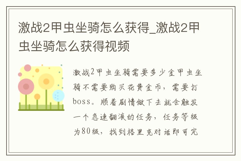 激戰2甲蟲坐騎怎么獲得_激戰2甲蟲坐騎怎么獲得視頻