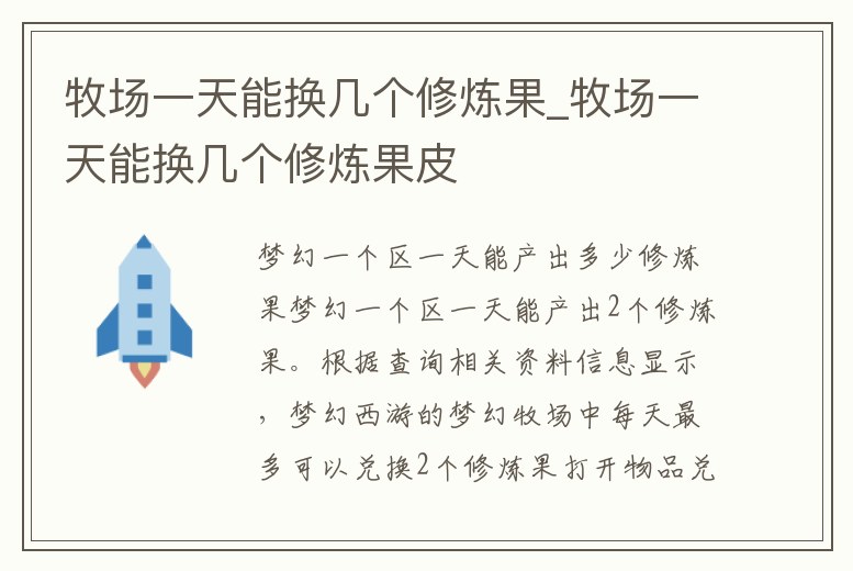 - 牧場(chǎng)一天能換幾個(gè)修煉果_牧場(chǎng)一天能換幾個(gè)修煉果皮