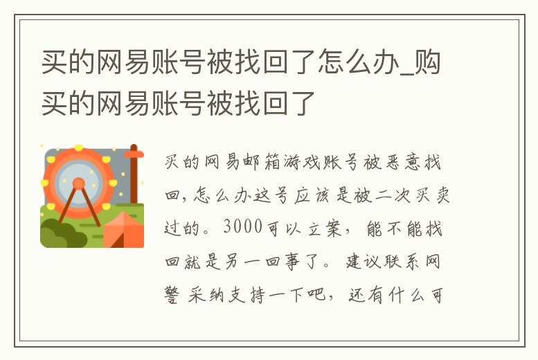 買的網易賬號被找回了怎么辦_購買的網易賬號被找回了