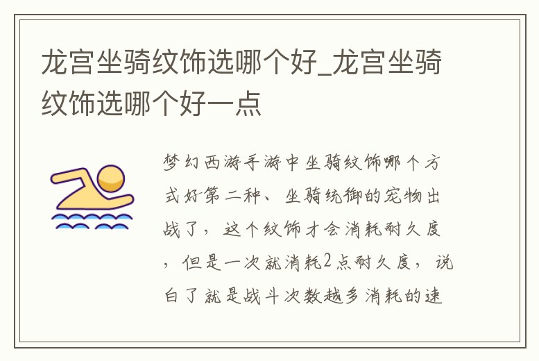 龍宮坐騎紋飾選哪個好_龍宮坐騎紋飾選哪個好一點