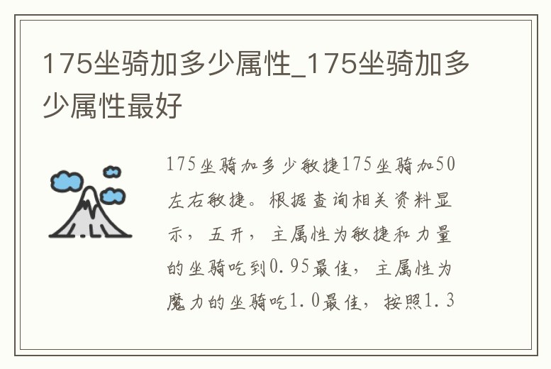 175坐騎加多少屬性_175坐騎加多少屬性最好
