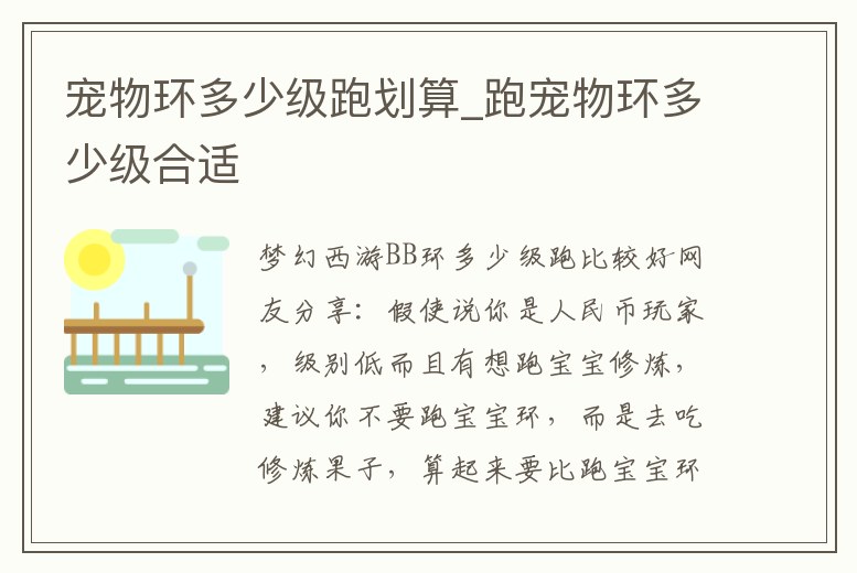寵物環多少級跑劃算_跑寵物環多少級合適