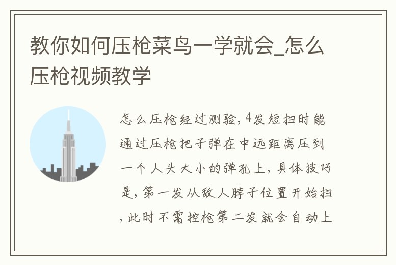教你如何壓槍菜鳥一學(xué)就會(huì)_怎么壓槍視頻教學(xué)