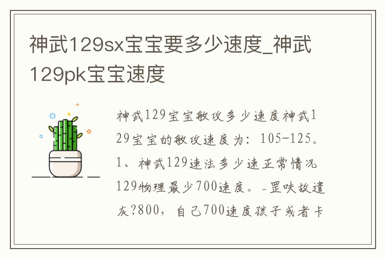 正常情況129物理最少700速度。_罡呋故遣灰?800,自己700速度孩子或者卡速寶寶才有用處,速度太高了卡速和孩子就會變得很脆。