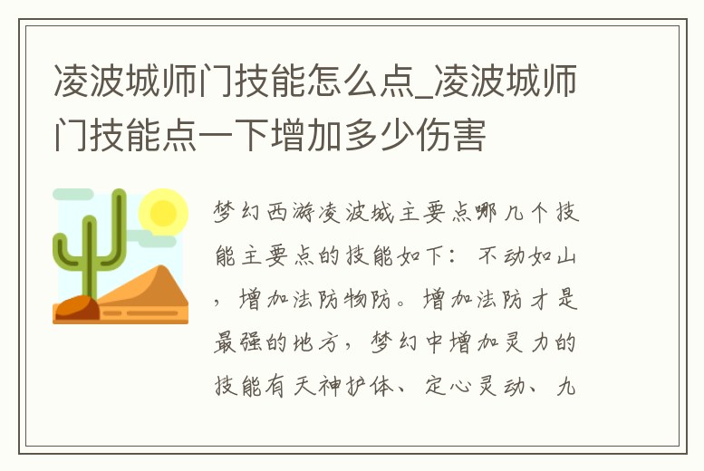 凌波城師門技能怎么點_凌波城師門技能點一下增加多少傷害